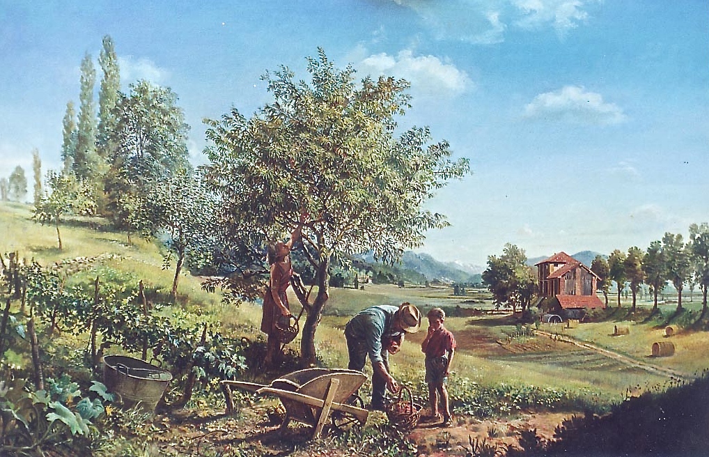 The landscapes by Ferrari describe the countryside and the pre-Alps area, with colours and visual frames that seem to be a revival of the XIX century landscape painting school, especially of the Lombard area. In this case, too, they are not paintings made with technological means of reproduction or using “photo-painting”.