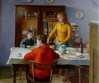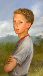 Michele Ferrari, as many times has been written, is a painter who makes works belonging to the western painting tradition. “Portrait”, as an artistic genre, is part of this tradition. Still all made with oil technique and from real life. The portraits show faces and half busts of women, men and children in their daily life, or in poses and situations that remind us those of the genre painting from centuries ago.